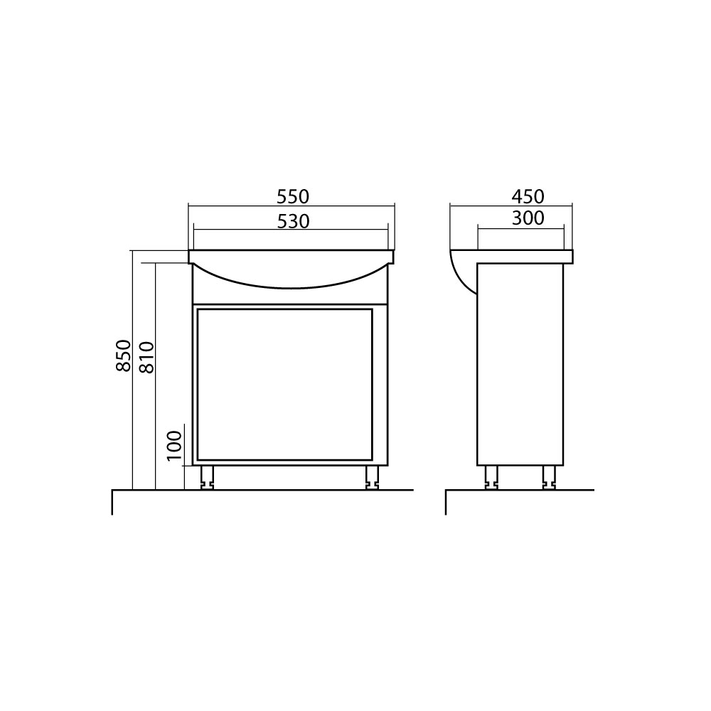 - Mõõdud: 550 x 450 x 850 mm (mõõt on antud koos reguleeritavate kapi jalgadega).